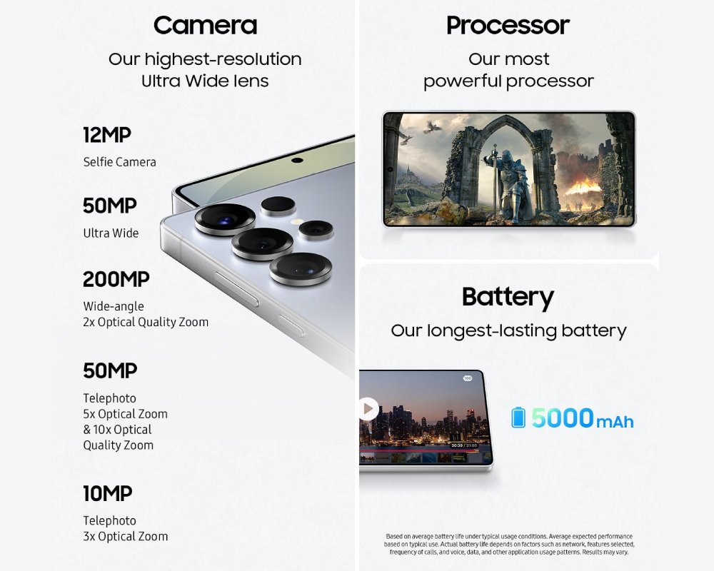 The Galaxy S25 Ultra combines top-tier performance, advanced cameras, long-lasting battery life, and a sleek design. It handles multitasking, gaming, photography, and productivity effortlessly, making it an ideal choice for all types of users.