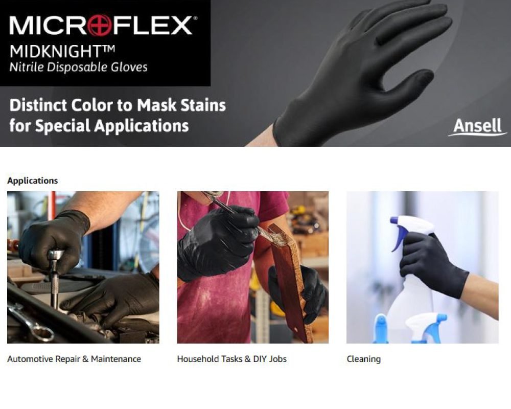 One well-known option in this category is the Ansell MICROFLEX MidKnight MK-296 Disposable Nitrile Gloves. These gloves are designed specifically for demanding environments such as automotive workshops and industrial settings. Their distinctive black color hides grease and stains, while the textured surface improves grip in wet or oily conditions.