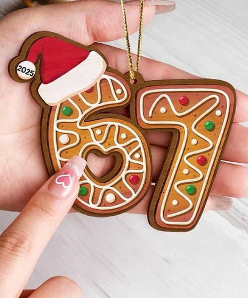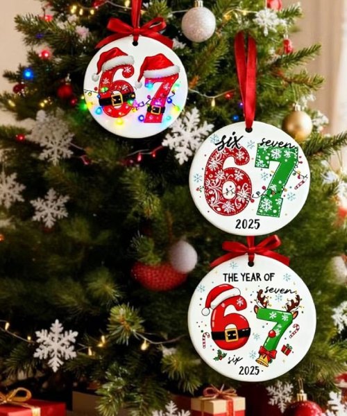 This 4-pack of 67-themed acrylic ornaments adds a playful touch to Christmas trees, wreaths, garlands, or seasonal displays. Each 3.15″ ornament is lightweight, durable, and features clear, vibrant printing, making them perfect for decorating or gifting during the holidays.