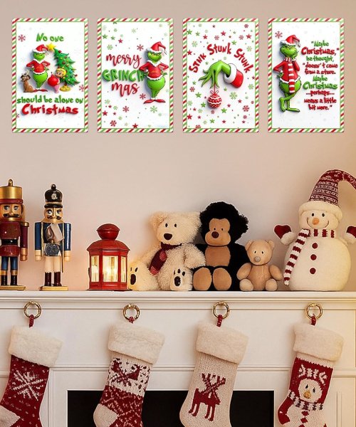 Add whimsical holiday charm with this 4-piece set of Grinch metal tin signs, perfect for bathrooms, bedrooms, or living rooms. Made from durable, waterproof metal with a vintage finish, they’re easy to hang and make a funny, lasting Christmas gift or festive décor accent.